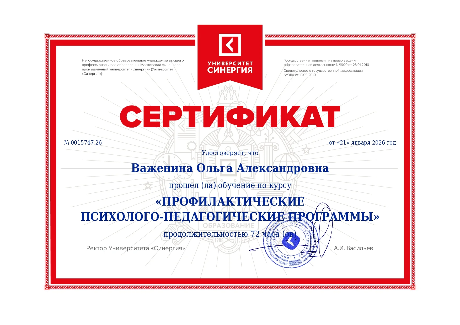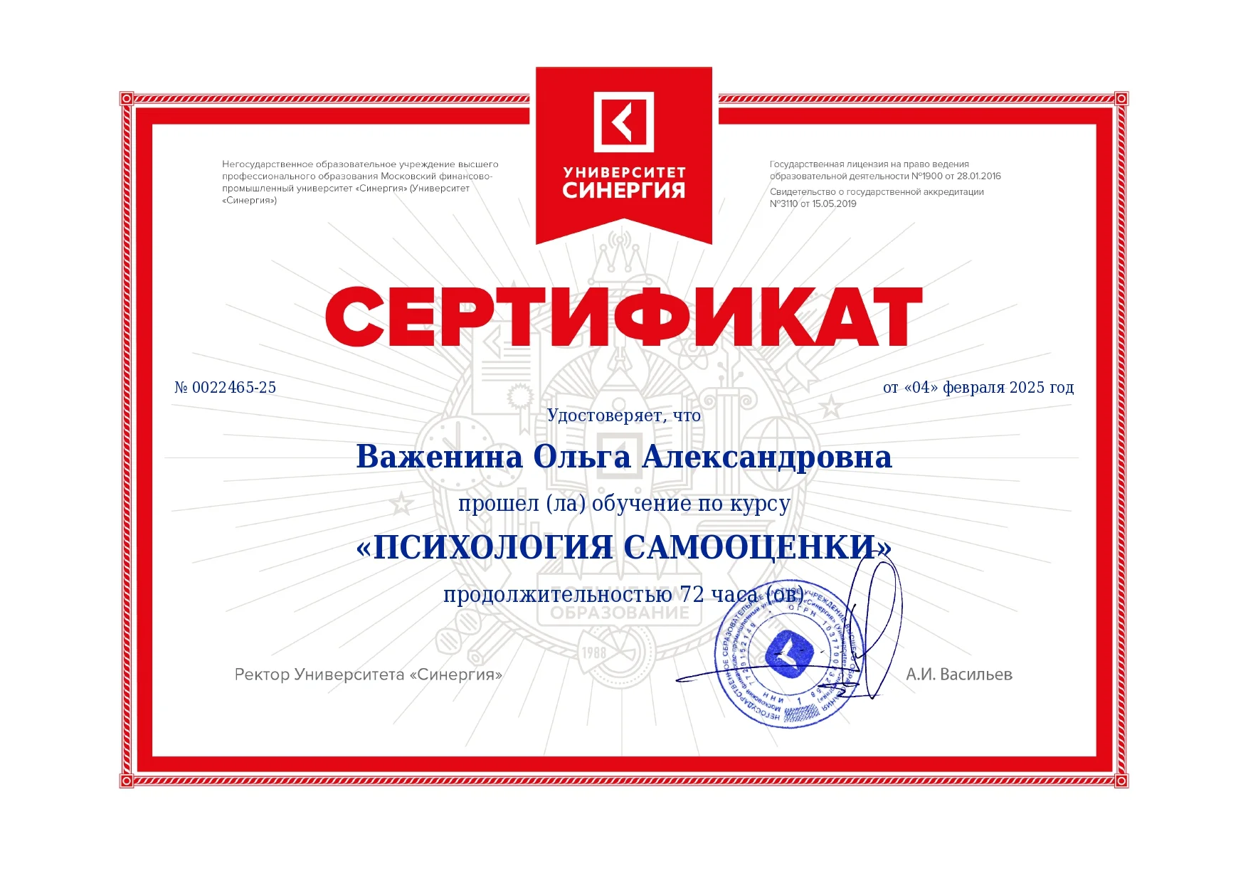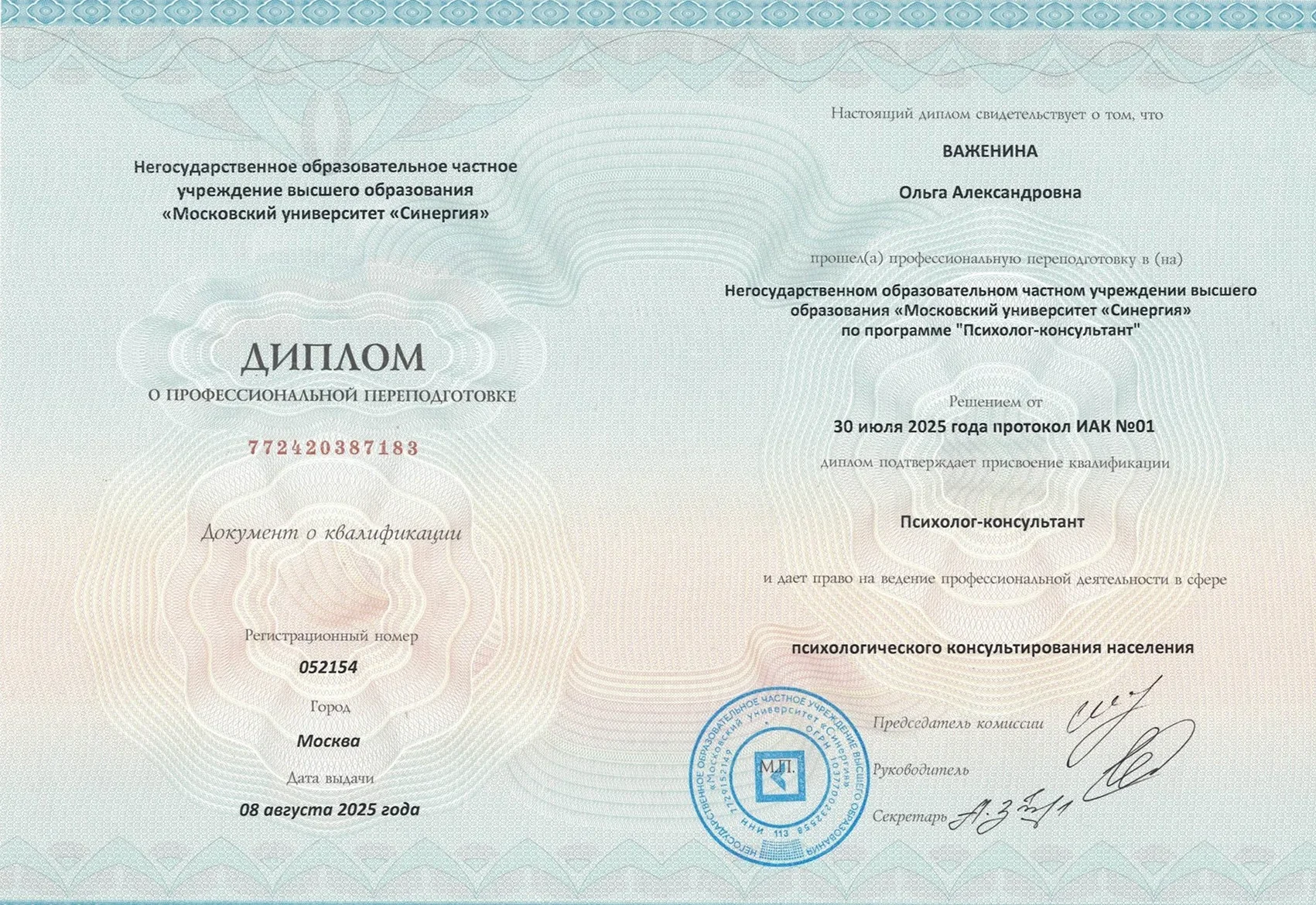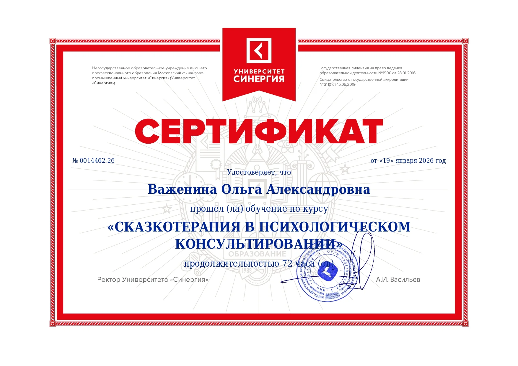 Я, Ольга Важенина — практикующий семейный психолог с высшим медицинским и психологическим образованием, действительный член Общероссийской профессиональной психотерапевтической лиги. Моя главная задача — создать для вас безопасное и доверительное пространство, где можно быть собой, без страха осуждения.